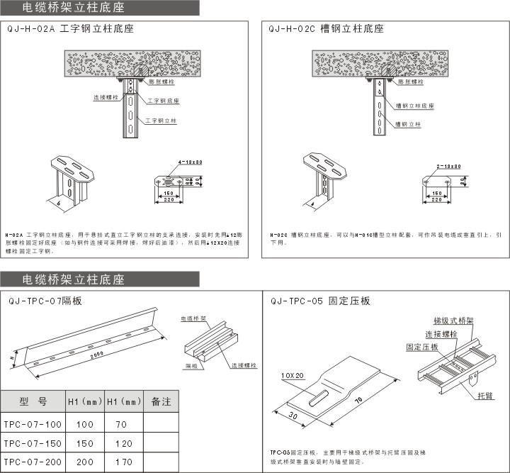 ● 固定件、配件          ● 立柱底座            ● 电缆桥架支架